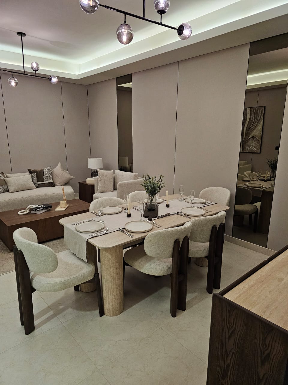 اعتمدنا على تناغم بين الإضاءة الطبيعية والإضاءة المعمارية، ولوحة ألوان راقية، وتفاصيل تشطيب دقيقة تمنح المكان شخصية متوازنة بين البساطة والفخامة.